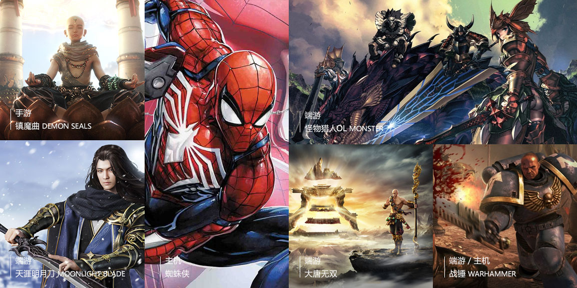 《剑灵》、《EVE》、《战地》、《MGS》、《MGS》、《光荣使命》、《古墓丽影9》等项目。
